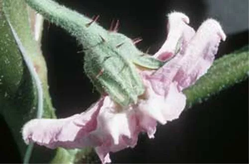 Фото. На чашечці і стеблі баклажана є гострі гачкоподібні шипи