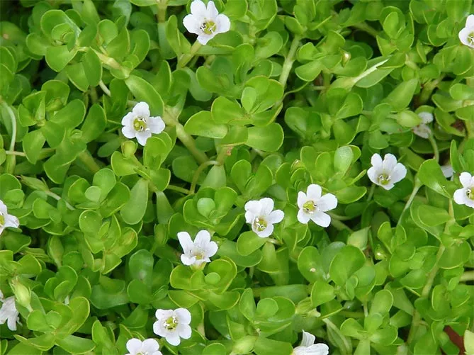 Рослина має повзучу форму. З кутів листя ростуть маленькі квітки з 5 пелюстками. Квітів так багато, що англійці називають бакопу сніговими пластівцями. Характерна риса – закриття квітів вночі. Квіти дуже маленькі, залежно від різновиду бувають простими або махровими. Часто можна почути такі назви, як фіолетова і рожева бакопа, але найпоширенішими є білі квіти.