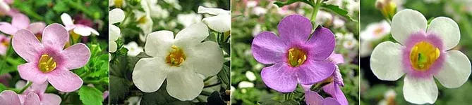 | Колір квітів | Блакитні, білі, рожеві, з рожевим вічком![]() |