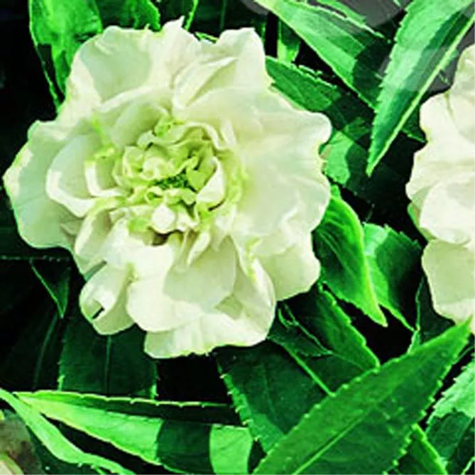 | Камелія Вайт (Camellia White) – дуже декоративний сорт бальзаміну з білими квітками | ![]() |