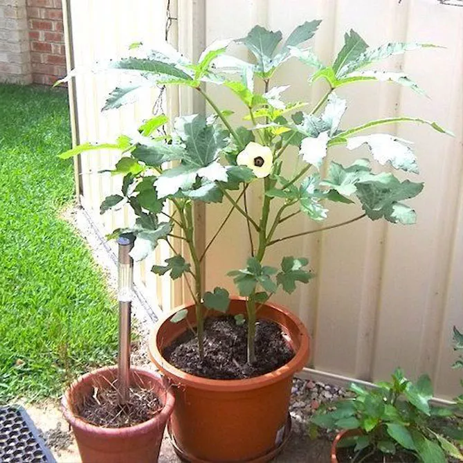 При вирощуванні бамії в горщику, встановіть цю ємність у блюдці, на подушці з керамзиту. Слідкуйте за тим, щоб блюдце завжди було наповнене водою. Це створить підвищений рівень вологості для рослини.