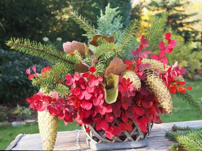 Фото. Малинові або золотисті листки нададуть шарм будь-якому букету. Після обрізки чагарника можна використовувати гілки для ваз або плетіння різних прикрас.