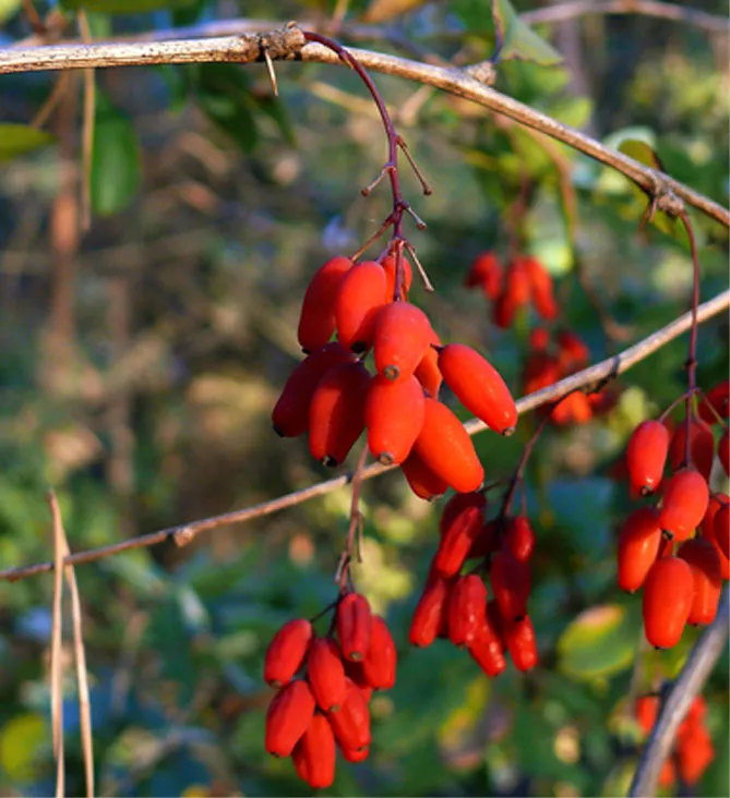 Плоди та пагони барбарису звичайного (Berberis vulgaris) містять близько 1% берберидину. Ця речовина завдяки своїм жовчогінним та легким спазмолітичним властивостям може бути використана при захворюваннях печінки та жовчних проток. Берберин і бербамін присутні у всій рослині – сполуки з антибактеріальними властивостями (берберин також має протизапальну дію). Обидві сполуки впливають на секрецію жовчі.