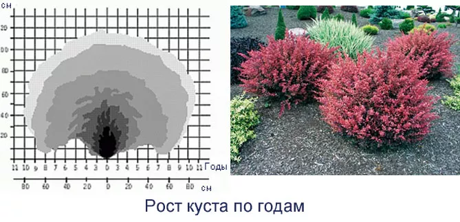 Сорт самшитолистий нана, барбарис росте висотою до 1 метра. Приріст тернистого чагарника становить 5 см на рік.
