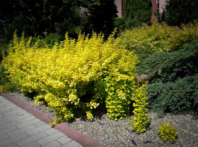 Росте до 1 м у висоту, шириною 1,5 м. Світло-зелені листки перетворюються восени на жовті, алі. Не вимогливий по відношенню до ґрунту і розташування, краще росте у сонячних місцях. Відмінний, стійкий чагарник.