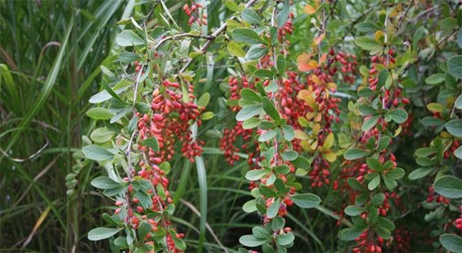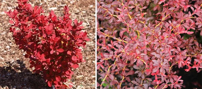 Барбарис виду Тунберга досягає висоти близько 1,5 метра. На додаток до овальних листків, його головна прикраса – подовжені, червоні ягоди. Вид включає величезну кількість декоративних сортів, що значно відрізняються один від одного.