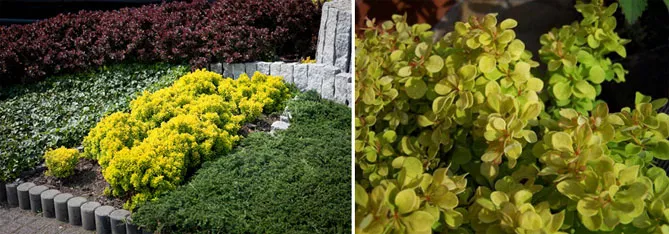 - Найнижчі барбариси – цікаві рослини для кам'янистих садів, рокаріїв, чудово поєднуються з камінням та стінами.