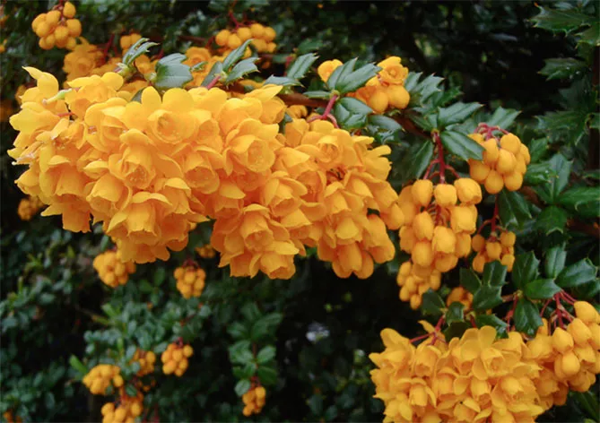 - Ганьєпена – барбарис вічнозелений, з кулястою кроною, темно-синім ягодами.
