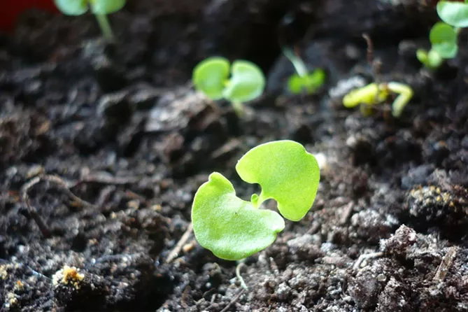 - Базилік проростає на світлі, тому насіння не покривають грунтом, лише злегка вдавлюють у землю.