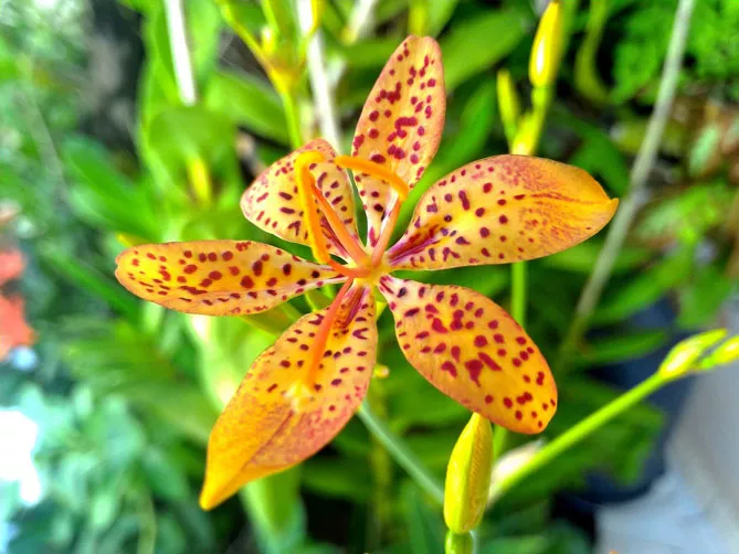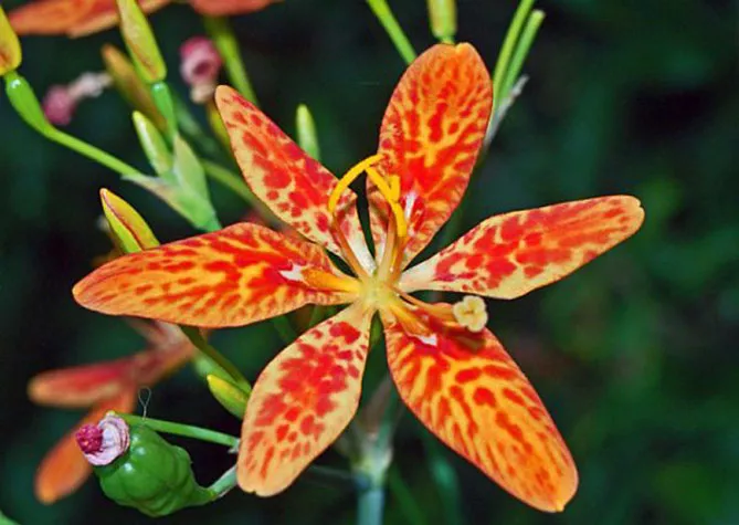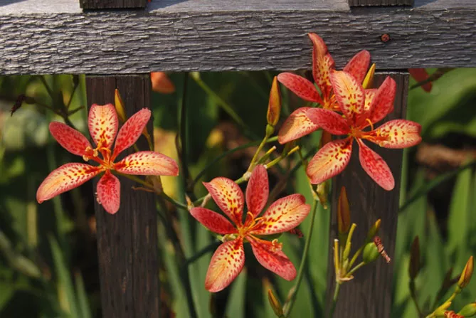 Це витривале багаторічне рослина, родом з Азії саджають на клумбах, бордюрах, у рокаріях або горщиках. Тигровий ірис беламканда утворює пучок вузьких віялоподібних листків, але особливо декоративний він влітку завдяки своїм гарним оранжево-червоним квітам, що нагадують крапчасту шерсть тигрів та леопардів. Дізнайтеся, як проводити вирощування беламканди з насіння, посадку та догляд, подивіться фото та опис квітки. Не складніше у догляді, ніж садові іриси, ця рослина заслуговує місця в саду.