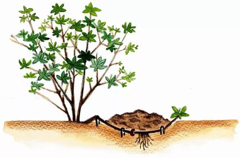 Оскільки кущ зазвичай росте, як півколо, він дає садівнику простий спосіб отримання нових саджанців – звичайне вкорінення відводків або живцювання. Розмноження живцями відбувається наступним чином: згинається напівдерев'янистий пагін до землі, поміщається у підготовлену борозенку і закривається землею. Закріпити пагін у землі можна металевим гачком.