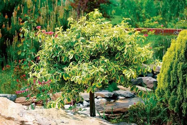 - Emerald Gold – густий кущ з невеликим світло-зеленим листям з яскраво-жовтою облямівкою. Неморозостійкий.