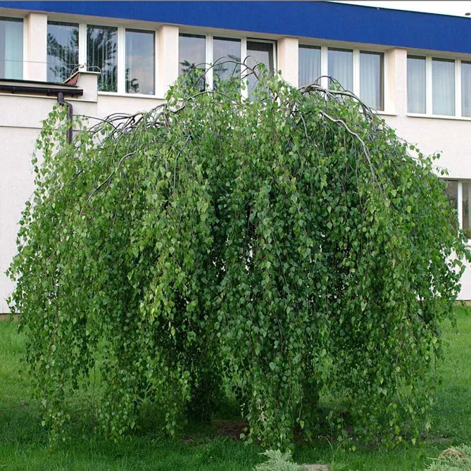 Береза повисла «Тристис» (Betula pendula Tristis) цвіте з березня по квітень. Висота – 17 м. Дерево схоже на плакучу вербу. Його чудова графіка підкреслюється корою, що зберігає гарний білий колір навіть з віком. Сорт з витончено звисаючими гілками, вкритими шелестять на вітрі листям, що жовтіє восени. Це величне дерево знайде місце у великому саду, в сучасному, дикому або романтичному стилі.