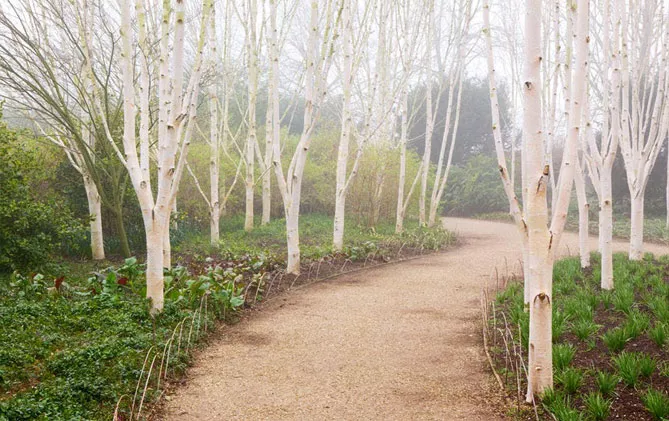 Якості берези дозволяють їй адаптуватися до всіх стилів саду в прохолодному кліматі. Біла кора посилює чарівну атмосферу зими. Дерева гармоніють з блідим небом, дуже гарний морозний вигляд гілок, які ловлять світло, як тільки на них падає сонячний промінь.