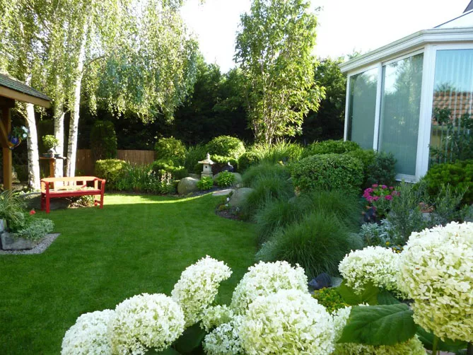 Це всім відоме, але дуже декоративне дерево з легким силуетом і гнучкою витонченою постаттю надає романтизму саду в будь-яку пору року. Ефектно виглядає посаджена перед живою огорожею або гаєм хвойних дерев з темно-зеленою або блакитнуватою хвоєю – тонкі гілки берези, що гойдаються на вітрі, дозволяють оцінити глибокий зелений фон.