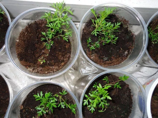 - Насіння висівають у лотки з субстратом для розсади і тримають у теплому, сонячному місці. Ґрунт перед посівом необхідно гарненько розпушувати. Краще використовувати спеціальний ґрунт, призначений для балконних квітів, його реакція повинна бути від слабкокислої до слабколужної. Найкраще сіяти у торф'яні горщики.