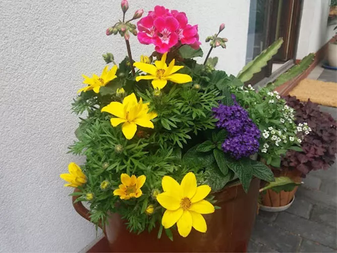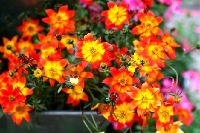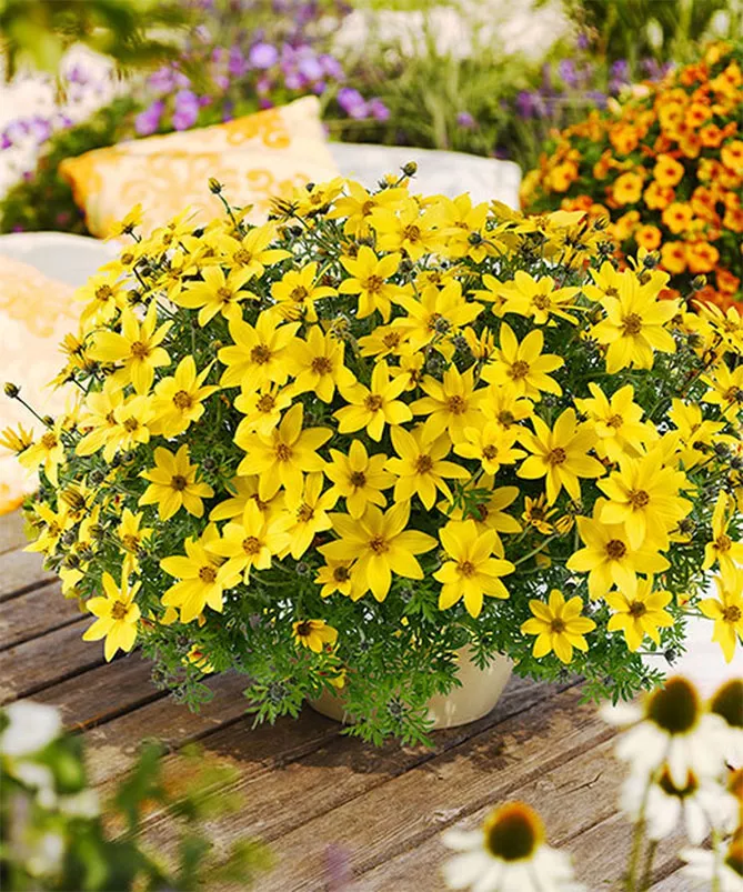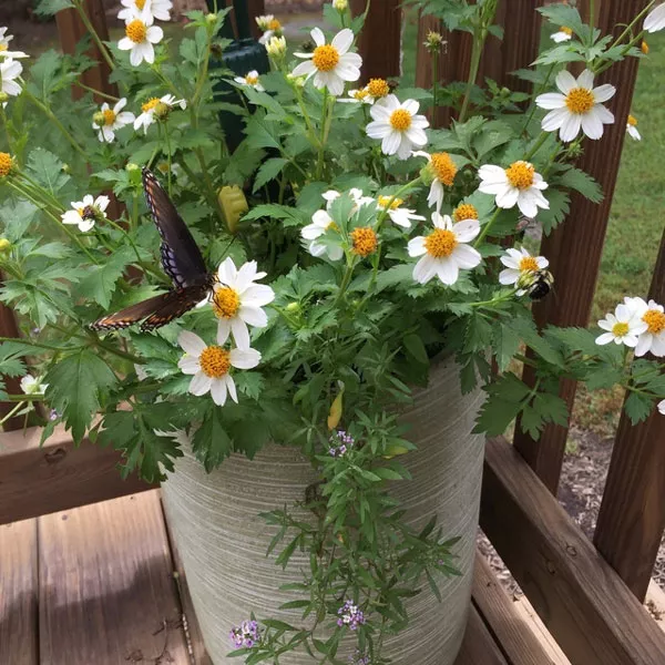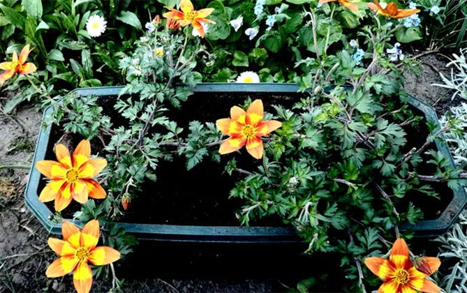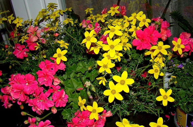 Фото. На наступних фотографіях представлений біденс у композиціях з різними рослинами в горщиках.