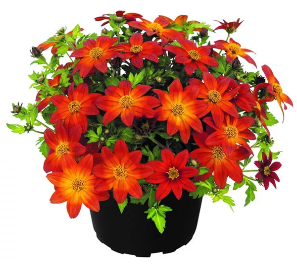 - «Флайр» Flair – ампельный сорт биденса характеризуется сильным ростом, имеет крупные, махровые или полумахровые цветки, цветет очень обильно.