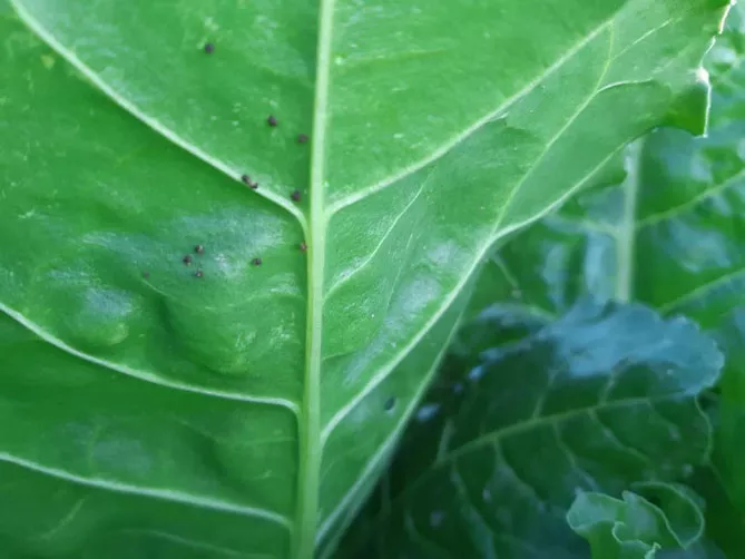 Фото. Чорний послід шкідника може свідчити про присутність металловидки-гамми