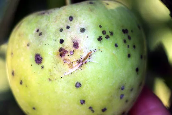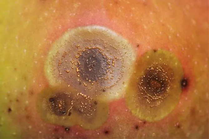 - На заключній стадії зберігання фруктів, під час дозрівання з'являються численні маленькі плями.