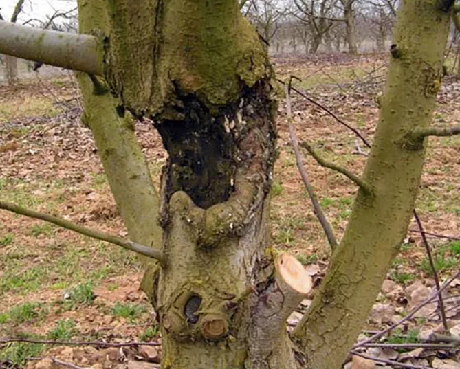 Фото. Повільна загибель дерева в результаті ураження стовбура яблуні фітофторозом.