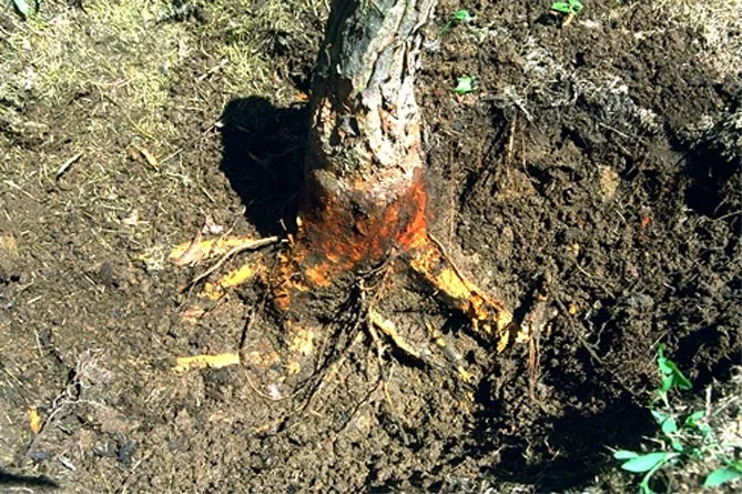 Фото. Гниль кореневої шийки яблуні.