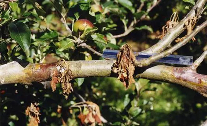 У випадку молодих яблунь хвороба (зараження стовбура) призводить до загибелі рослин.