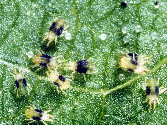 - звичайний павутинний кліщ (Tetranychus urticae) – має жовто-зелене тіло (влітку) і цегляно-червоне (взимку).