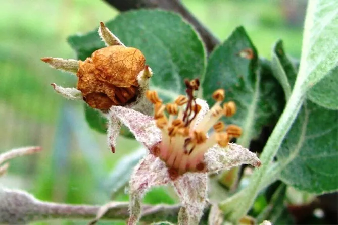 - хвороба може вразити бруньки, квіти, плоди яблуні;