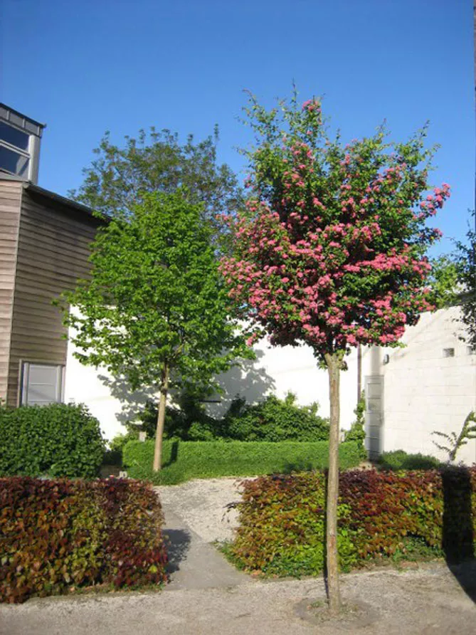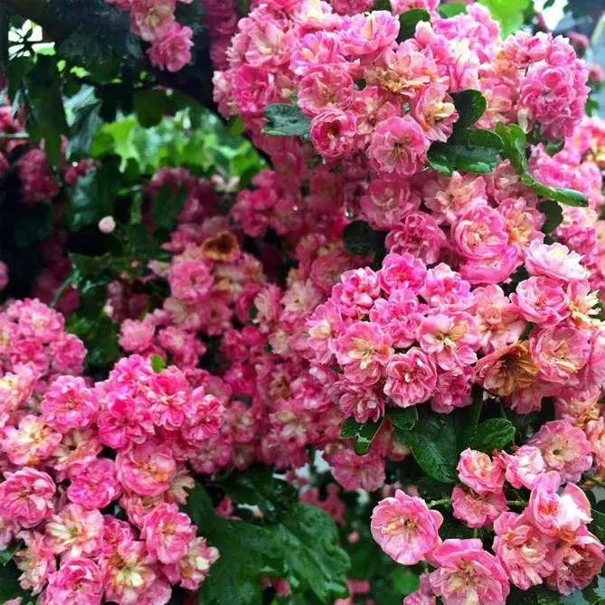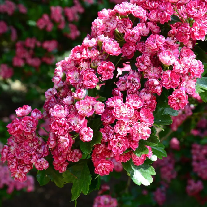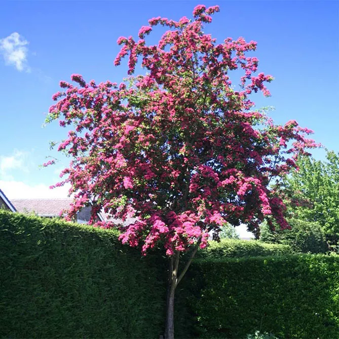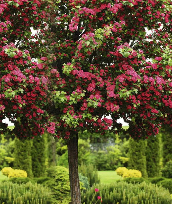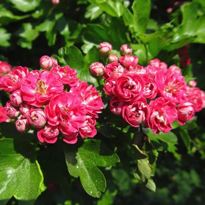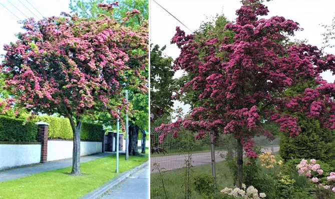 - Сорт «Пауль Скарлет» (Paul’s Scarlet) – один з найкрасивіших, квітне з квітня по червень. Висота дорослої рослини – 6 м. Сорт Paul’s Scarlet відомий з 19 століття і недарма, рідко зустрічаються дерева і чагарники з таким гарним цвітінням. У травні дерево буквально вкрите махровими квітами неймовірного темно-рожевого кольору.