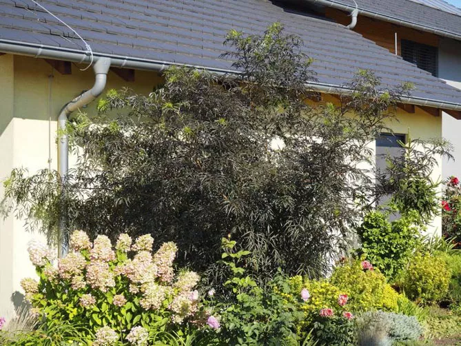 Бузина добре пристосовується у саду, легко займе місце у живій огорожі, заповнить фоновий ярус клумб або прикрасить терасу. Велика різноманітність листя забезпечує дивовижний контраст за формою та кольором з іншими чагарниками – пузиріплодником калинолистим, барбарисом.