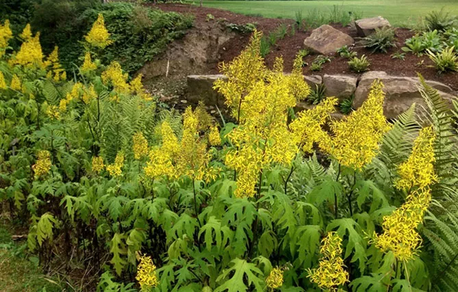 - Це прекрасна рослина, яку можна висаджувати у натуралістичних садах і на клумбах. Бузульник швидко збільшується у розмірах, забезпечуючи ефектне прикриття затіненим і вологим ділянкам саду.
