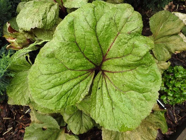 - Листя. Бузульники утворюють ефектні розлоги прикореневі розетки великих круглих листків на жорстких піднятих черешках. Листя може досягати діаметра 40-50 см. Вони відрізняються серцеподібною або круглою формою, можуть привертати увагу сильними заглибленнями. Колір листа зазвичай зелений, іноді червонуватий або з фіолетовим відтінком, буває, що нижня частина листової пластини забарвлена в пурпурні тони, іноді черешки також бувають червоними, пурпурними.