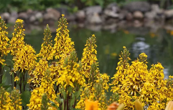 - Найкраще бузульники виглядають групами на березі ставка або озера, у компанії рослин: чистець болотний, цимицифуга, дербенник верболистий або плакун-трава.