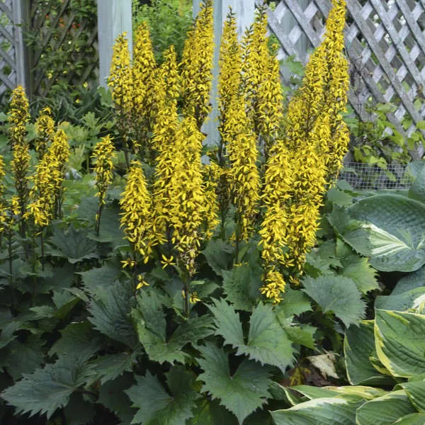 Гібрид бузульника Хессей (Ligularia hessei) – чудовий багаторічник, що виростає до 1,5-2 метра у висоту. Утворює розетки дуже великих зелених зубчастих по краях листків. Темно-жовті, кошикоподібні квітки зібрані на верхівках піднятих пагонів у зонтикоподібні суцвіття.