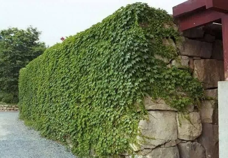 Замість будівництва цегляної, кам'яної стіни можна вибрати металеву сітчасту огорожу, натягнуту між стовпами, заплітаючи її плющем.
