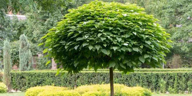 Звичайна або бігнонієвидна катальпа (Catalpa bignonioides) досягає висоти 10-20 м. Це швидкоросле дерево заслуговує на увагу. При посадці катальпи потрібно виділити багато місця – її крона може досягати діаметра 8 м. Катальпа любить добре освітлені місця. Для невеликих садів рекомендується сорт «Нана», який зазвичай продається у вигляді щепленої рослини. Кругла крона катальпи нагадує парасольку, виглядає сучасно. Плодові тіла, схожі на стручки квасолі, що звисають з дерева, надають рослині екзотичного характеру.