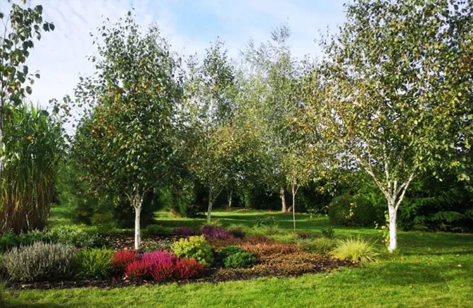 Надзвичайно ефектна Береза корисна (лат. Betula utilis) з дрібними листками – вид, що відрізняється швидким ростом. Відшарування кори є природним явищем для берези і не свідчить про хворобу. Берези цінуються за естетичні та декоративні якості. Білосніжна кора берез стане справжньою прикрасою саду. Це популярні швидкорослі дерева для дачі в Київській області, на Поліссі.