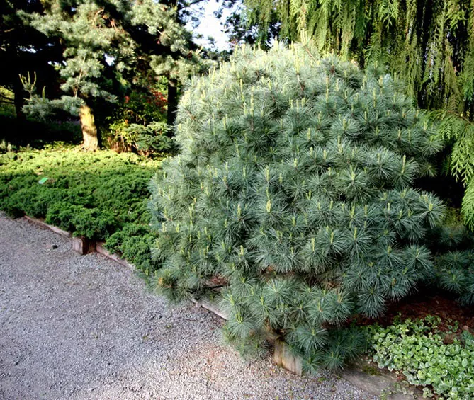 Термін служби сосни Веймутова – 200 років. Виростає до 20-30 м у висоту та окружності стовбура близько 5 м. Сосна веймутова повністю морозостійка. На жаль, чутлива до іржі. Особливих вимог до положення немає, сосна стійка до посухи, забруднення повітря, любить сонячні місця. Обрізку слід проводити на межі березня та квітня. Рани не потрібно захищати, сосна виділяє смолу, яка знищує мікроби.
