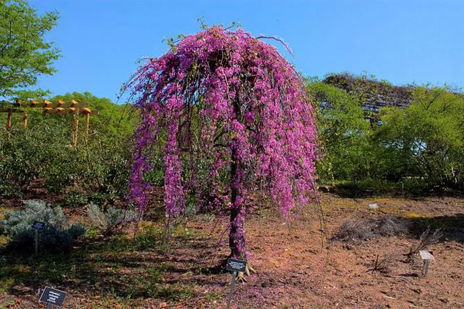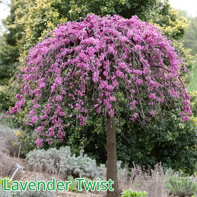 Гарний сорт «Лавандер Твіст» (Cercis canadensis ‘Lavender Twist) – здатний досягати 2,5-3,5 м у ширину. Дерево в японському стилі, зі звивистими, дугоподібними, плакучими гілками. Сорт вкривається рожевими квітами у квітні, до появи листя.