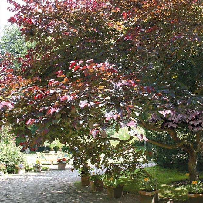 Маленькі сорти канадського багряника (Little Woody) або китайського (Avondale), легко знайдуть своє місце у тісному просторі завдяки скромному розміру. Їх можна садити поодинці, на клумбі або у живоплоті. У супроводі дрібнопильчатої вишні ‘Alba Plena’ вони братимуть участь у квітучій весняній сцені. Їх легко вирощувати у кадках на терасі, балконі.
