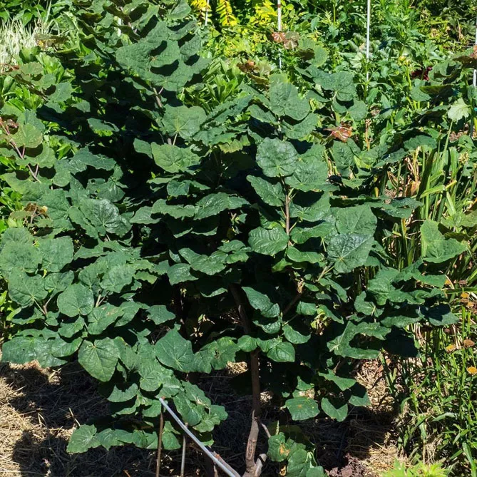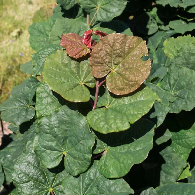 Рідко зустрічаються у бобових серцеподібні листки (округлі вгорі) мають 6-12 см у діаметрі. Жилки розходяться від основи. Листя на зиму опадає.