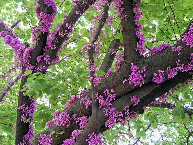 Фото. Дерево церцис, коли цвіте, виглядає дуже вражаюче та незвично
