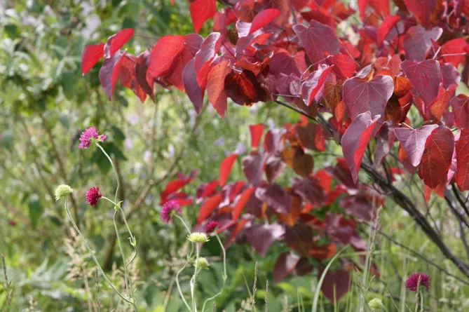 Фото. Чудова пурпурна листва C. canadensis ‘Forest Pansy’ «Форест пансі»