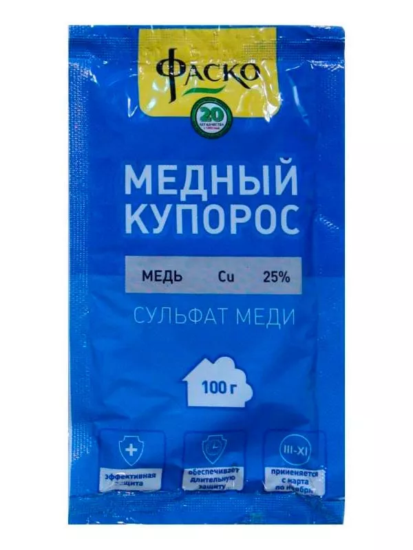 Дозування. Для приготування розчину розчиніть 1 чайну ложку сульфату міді (близько 5 г) у 1 л води.