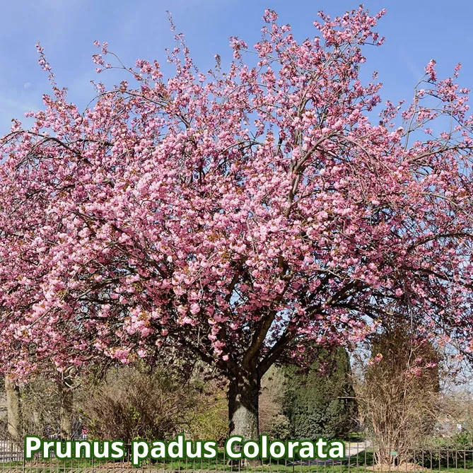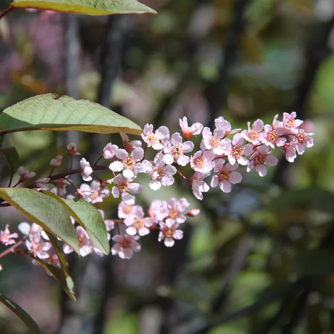 Черемха «Колората» (P. padus 'Colorata') – рослина з мідно-фіолетовим листям, що влітку набуває бронзового відтінку. Квіти та плоди: китиці блідо-рожевих квітів.
