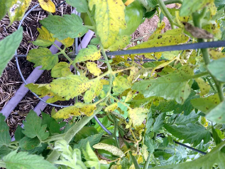 - Низька поливна норма. При недостатньому поливі, особливо при спекотній погоді, листя помідорів жовтіє, опадає.