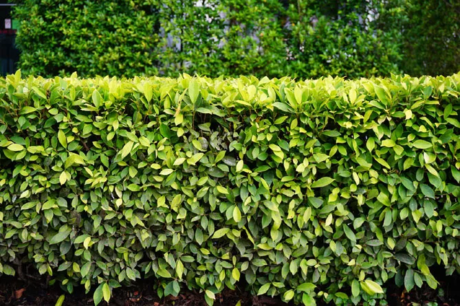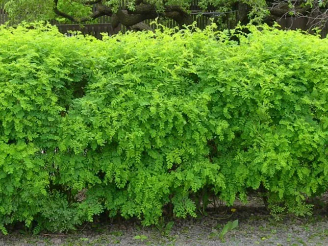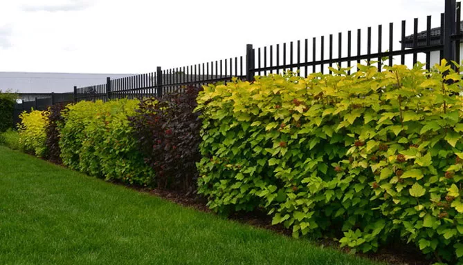 Щоб створити густий живопліт біля паркану саджають також листяні чагарники з густою кроною.