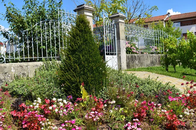 - Високий паркан закриває вид, але не повинен пригнічувати. Варто посадити біля нього хвойні рослини або червонолистий клен, непримхливі сорти троянд.