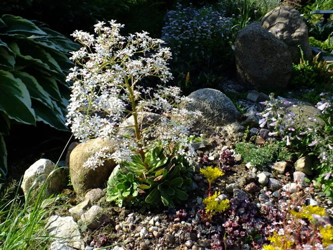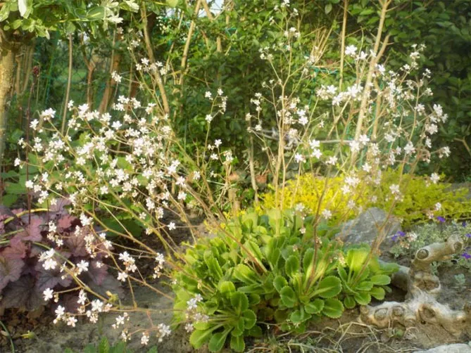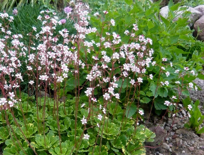 Азійська красуня, що цвіте тільки восени – розрив-трава Форчуна захоплює листками, що утворюють красиві розетки. Хвилясті краї листків і червоний колір нижньої сторони надають рослині декоративного відтінку. На тлі листя гарно виглядають кремові або рожеві квіти, зібрані в рихлі суцвіття.
